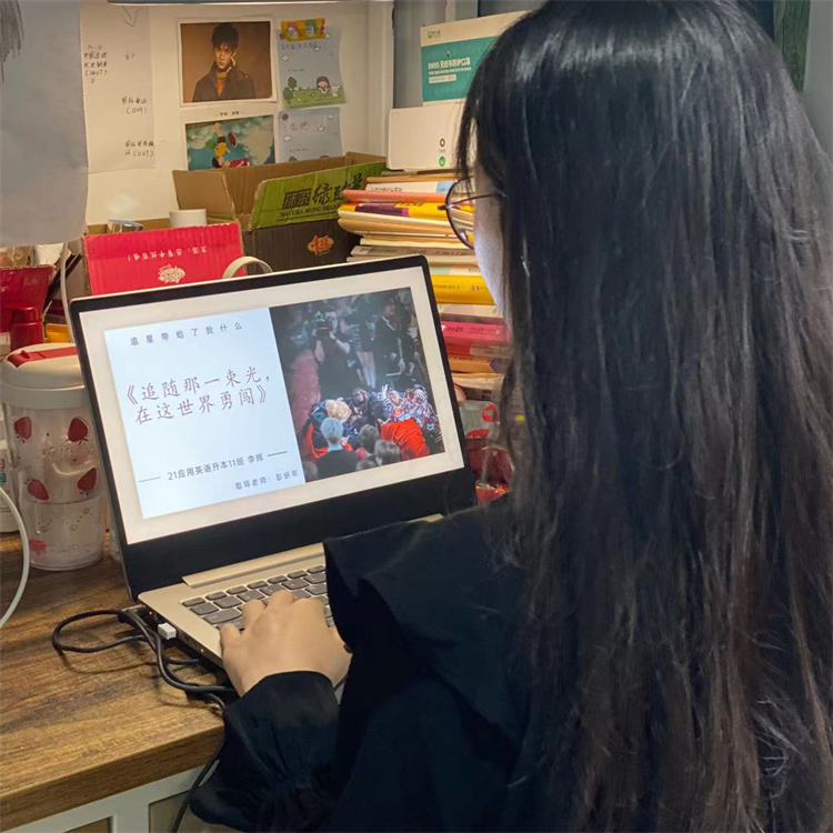 “你的偶像再了不起,全世界最可爱的人还是你自己,他永远都是有距离的,他是一颗星,但你是自己的太阳。”李辉同学分享的追星感受引起了会议上许多同学的共鸣。在互动环节中,有几位同学分享了自己对追星的看法,认为我们身边那些对社会有贡献的人何尝不算最闪亮的那一束光。第一位同学他的偶像是钟南山院士,疫情在20年寒冬爆发,钟南山院士肩负使命前往高发地,义无反顾的担当精神令人赞叹,他身上的优秀品质,深深感染着我们,正是因为他总是闪耀地发光,也是他的光让我们明白要成为更好的人,所以偶像是成为我们越变越好的原因。第二位同学她谈到她以前是不追星的,直到无意刷到了外交官发言人华春莹姐姐,特别佩服她的不卑不亢、雍容大方,她的故事让她明白了未来皆有可能,所以正确追星是想要追赶偶像的步伐,努力发光,希望可以成为和偶像同样优秀的人。