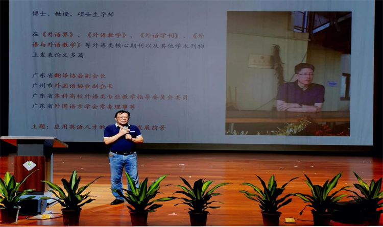 6月29日下午,广东工业大学蒋澄生教授应我院邀请,在广科大剧院为我院师生作“应用英语人才的学业职业发展前景”主题讲座。学院院长李磊、副院长杜艳红、督导组刘传贤教授、应用英语教研室副主任付辉红、辅导员彭妍年、凌晓萍、沈欧旎出席了本次讲座。讲座由副院长杜艳红主持。学院应用英语专业全体学生积极到场,共享这场学术盛宴。