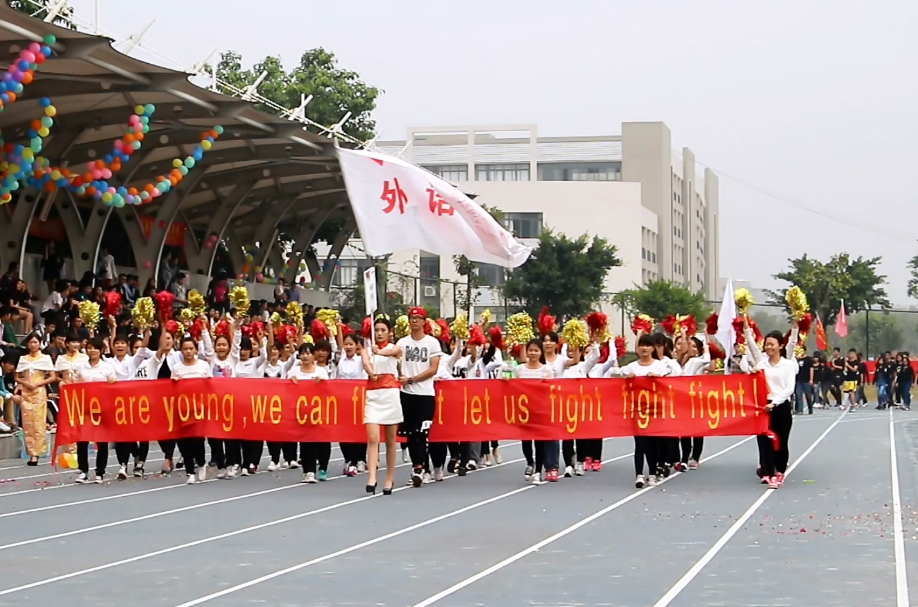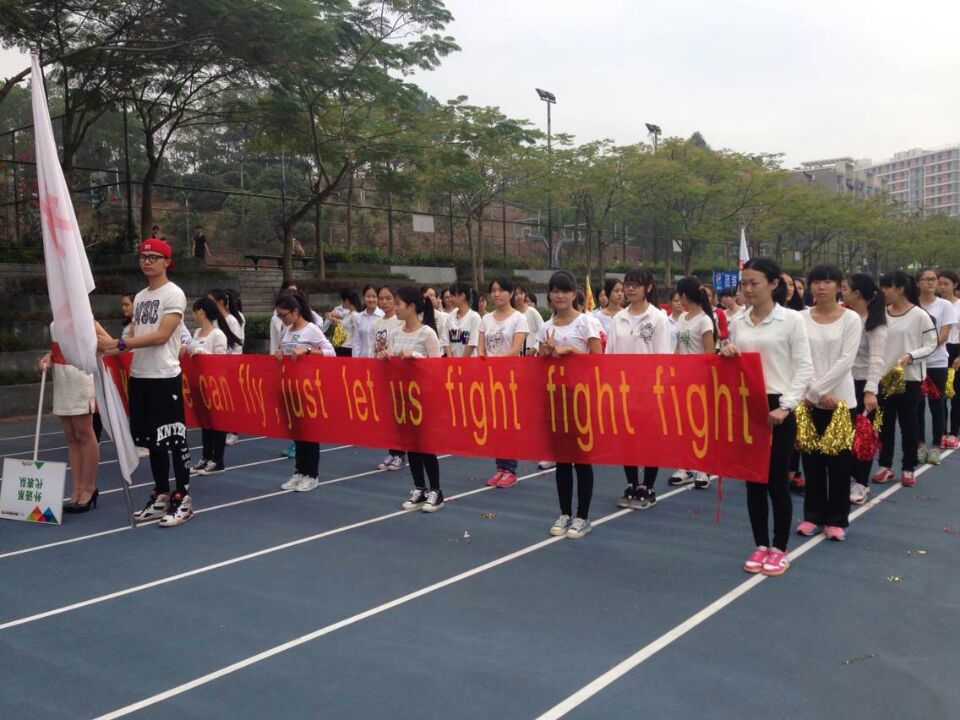在激昂的运动员进行曲中,我系运动员队伍精神饱满,步调一致,举着我系系旗与“We are young. We can fly. Just let us fight fight fight. ”宣传口号,昂首前进,迈向美好的未来,展现体育的风采,挥洒运动的汗水。