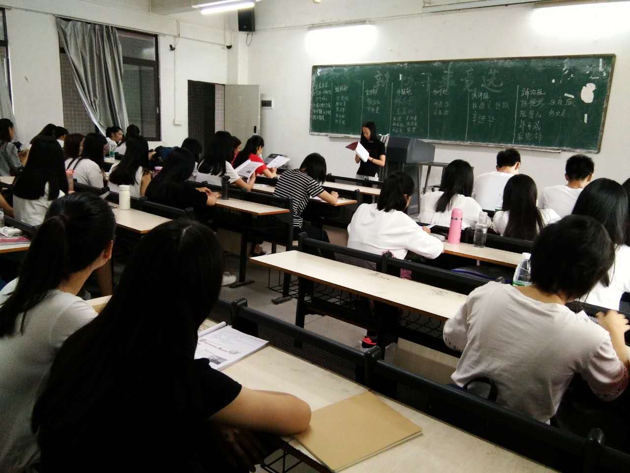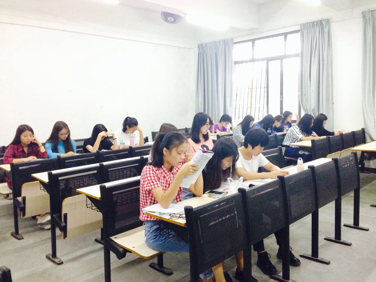 外语外贸学院的小伙伴在科代表的带领下读得朗朗上口,在远方就能听到他们读书声,让人神清气爽。