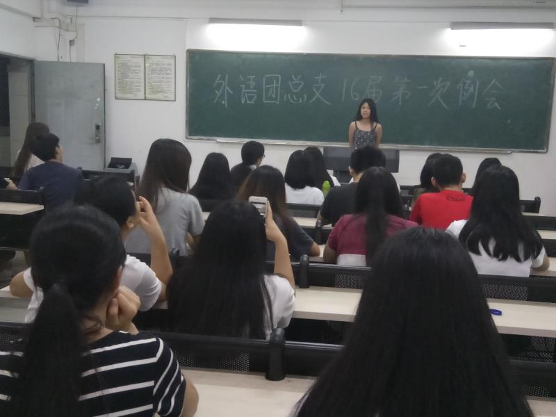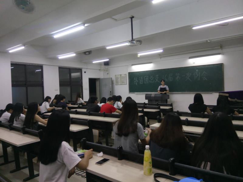 2017年6月5日晚上七点三十分,外语外贸学院团总支16级第一次例会于1203课室召开。