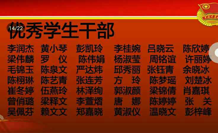 荣获优秀学生干部:积极辅助老师、积极参加学校社团活动。