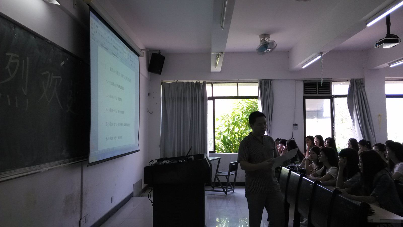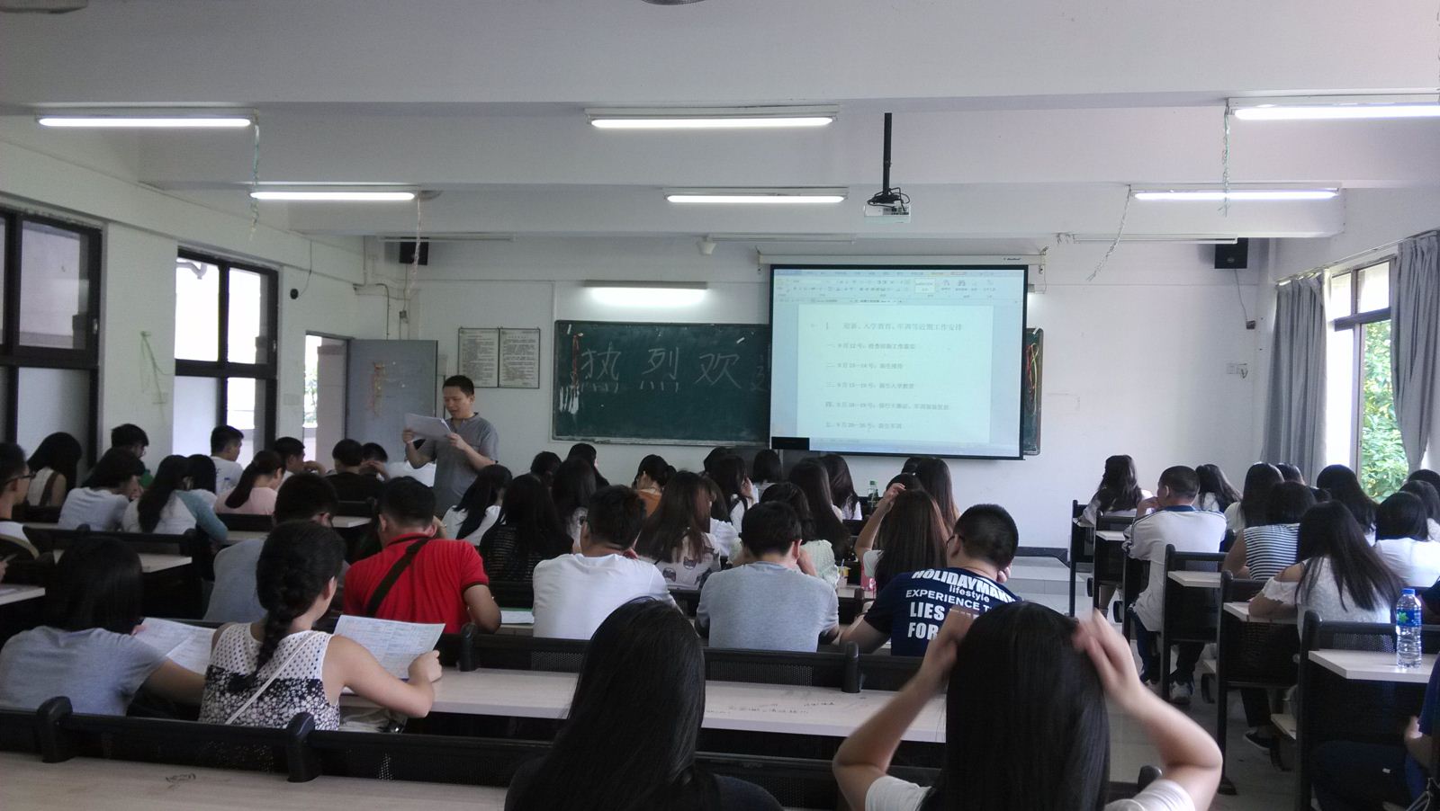 2014年9月15日上午8:30分我系在1203、2607课室举行新生入学教育,邱健书记与刘惠芳老师围绕校规校纪,安全,心理健康三个专题进行教育。