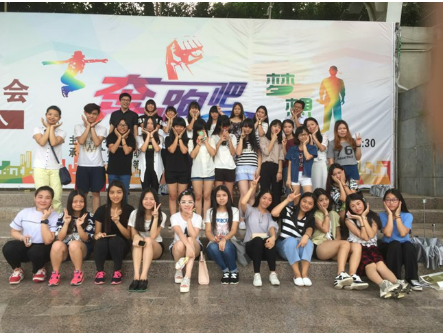 炎炎夏日,在静谧的午后,14文秘一班在辅导员刘惠芳老师的组织与带领下来到足球场主席台旁,进行了第一次素质拓展活动。
