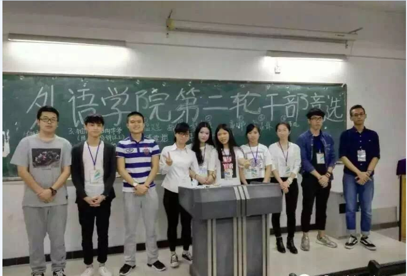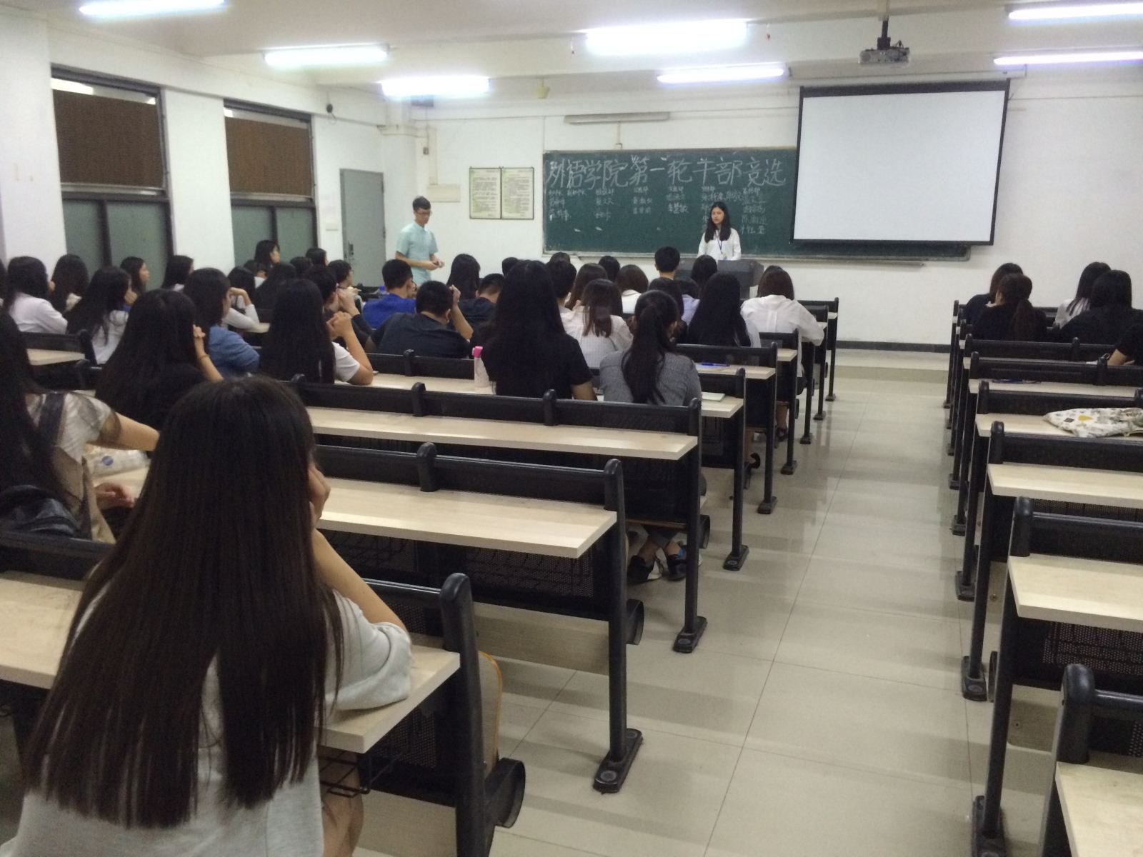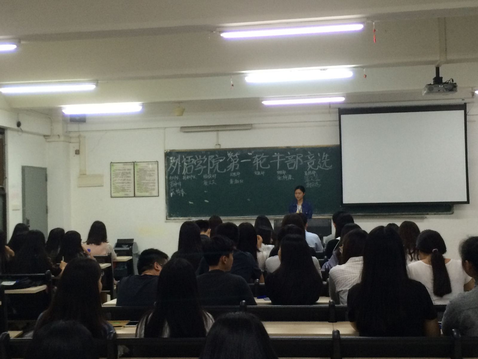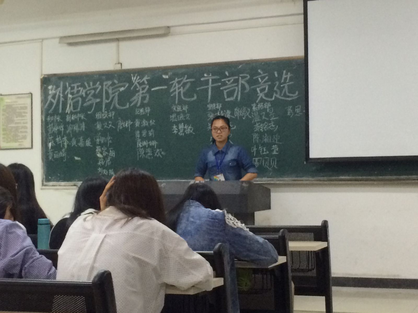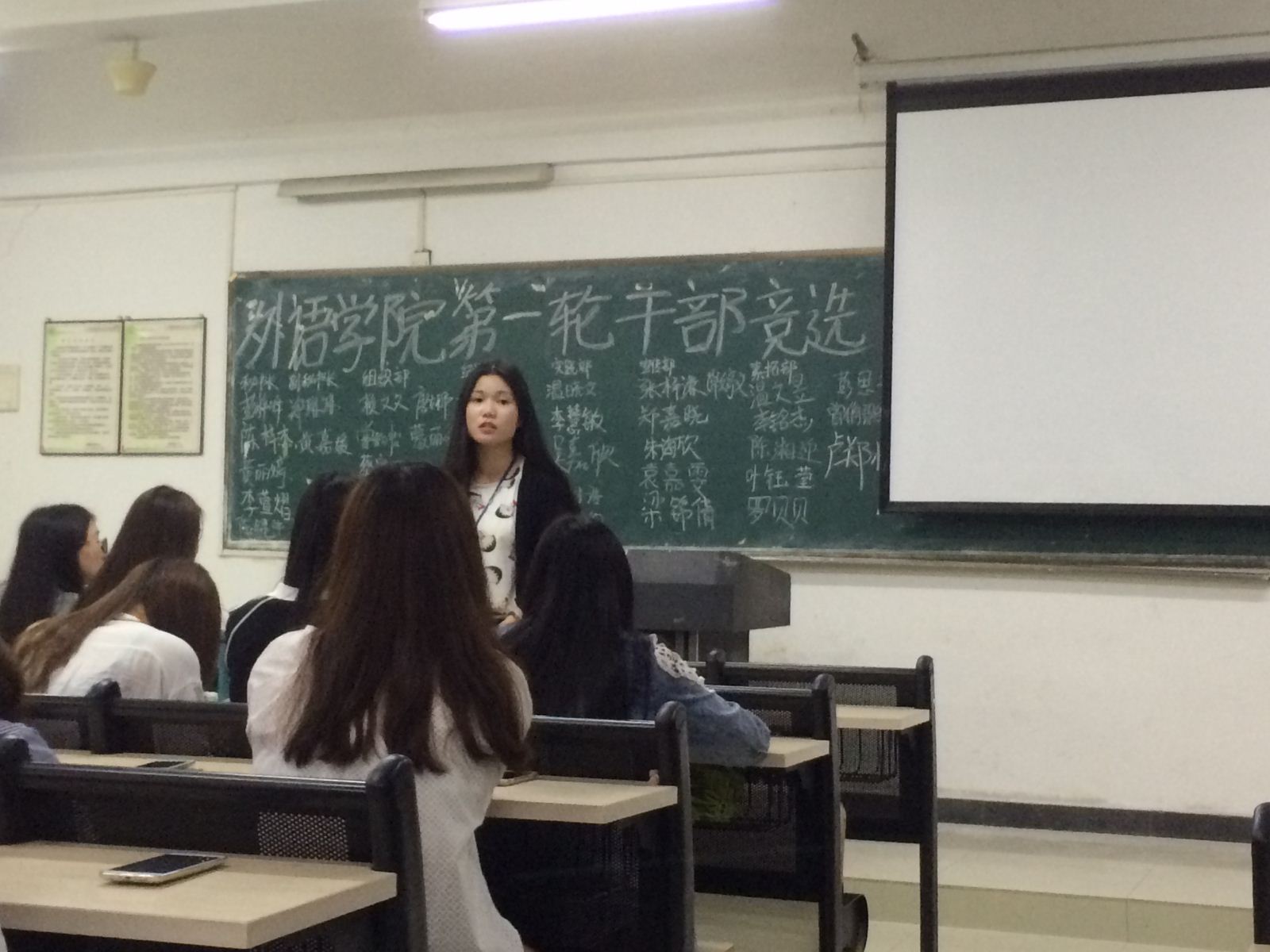 2016年4月21日在1203课室举行了外语外贸学院团总支第一次干部竞选。时间过得很快,又到了一年一度的换届竞选大会。座下的小伙伴是什么心情呢?加油!!!