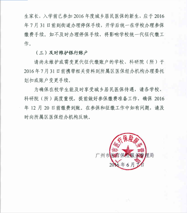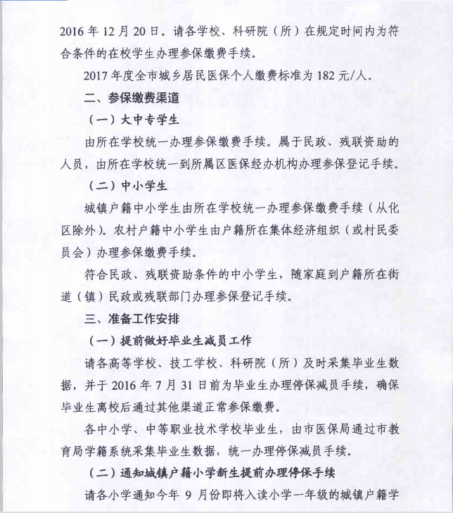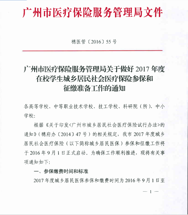 关于公布2017年广州市城乡居民医保筹资标准的通知