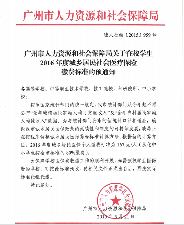 关于公布2016年广州市城乡居民医保筹资标准的通知