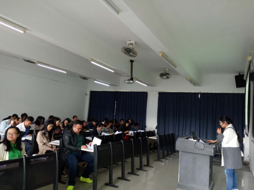 2017年125日,下午1015-1200,在1406课室开展了“学生心理测评结果的分析与处理”会议,由心理教研室吴文珍主任主讲,学校全体学院书记和带班辅导员都参加。本次会议主要对17级学生心理测评结果进行解析,让辅导员更明白如何了解班级学生的心理,怎么样跟有心理问题的学生沟通、怎么沟通如何沟通。