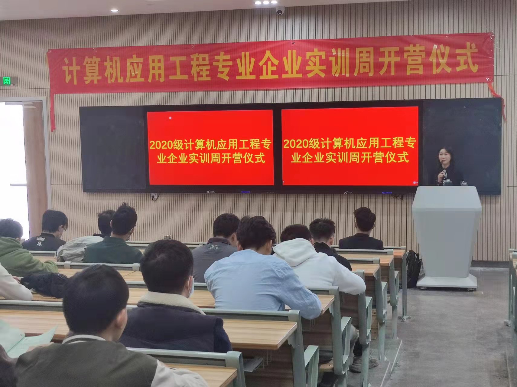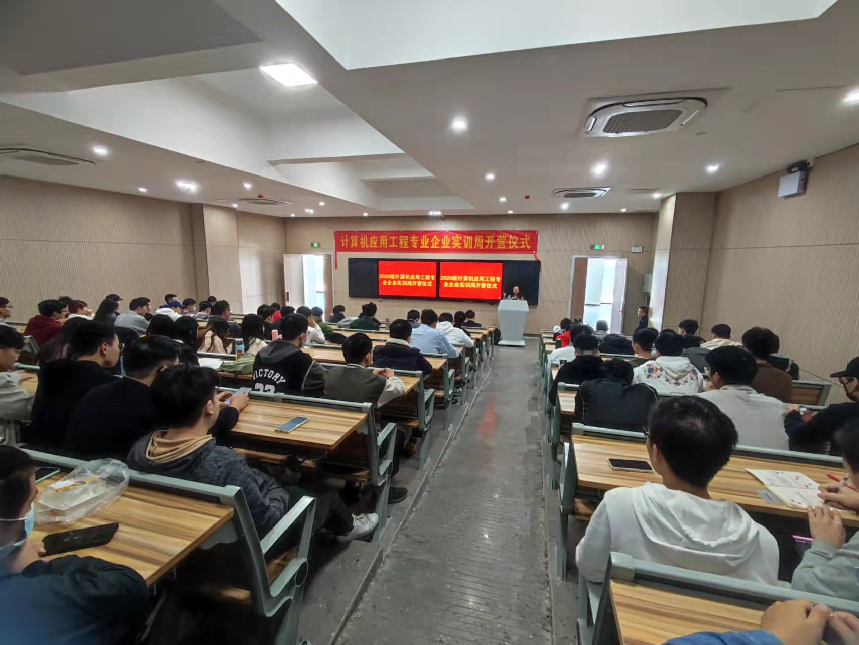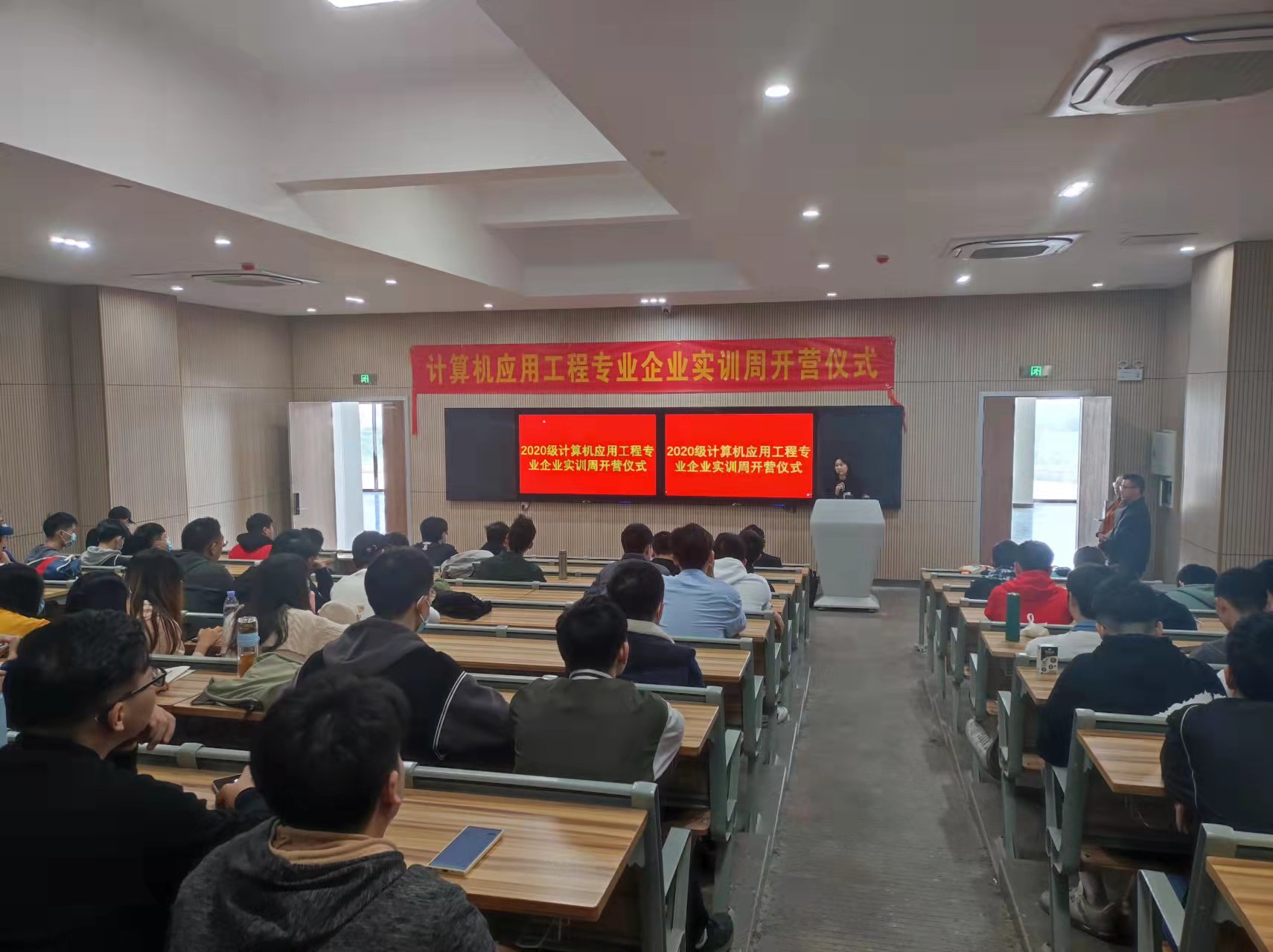 为执行20级插本计算机应用工程专业人才培养方案中的校企实践课程,将企业实际应用高技能融入教学,响应国家职业教育校企合作共同培养高素质高技能人才,乐鱼手机平台_乐鱼(中国)20级插本计算机应用工程专业的同学,在院领导及计算机教研室专业老师的组织推动下,该班全体学生在8号教学楼举行企业实训周开营仪式。