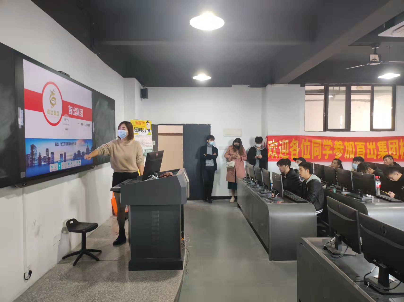 2021年12月2日上午,我院邀请广东首出网络科技有限公司前来校园进行宣讲招聘,本次宣讲主要面向20插本专业的学生。宣讲现场,首出集团面试官热烈欢迎各位同学的到来,鼓励各位同学踊跃参与面试、积极投递简历,为自己未来的职业规划选取一条适合自己的道路。