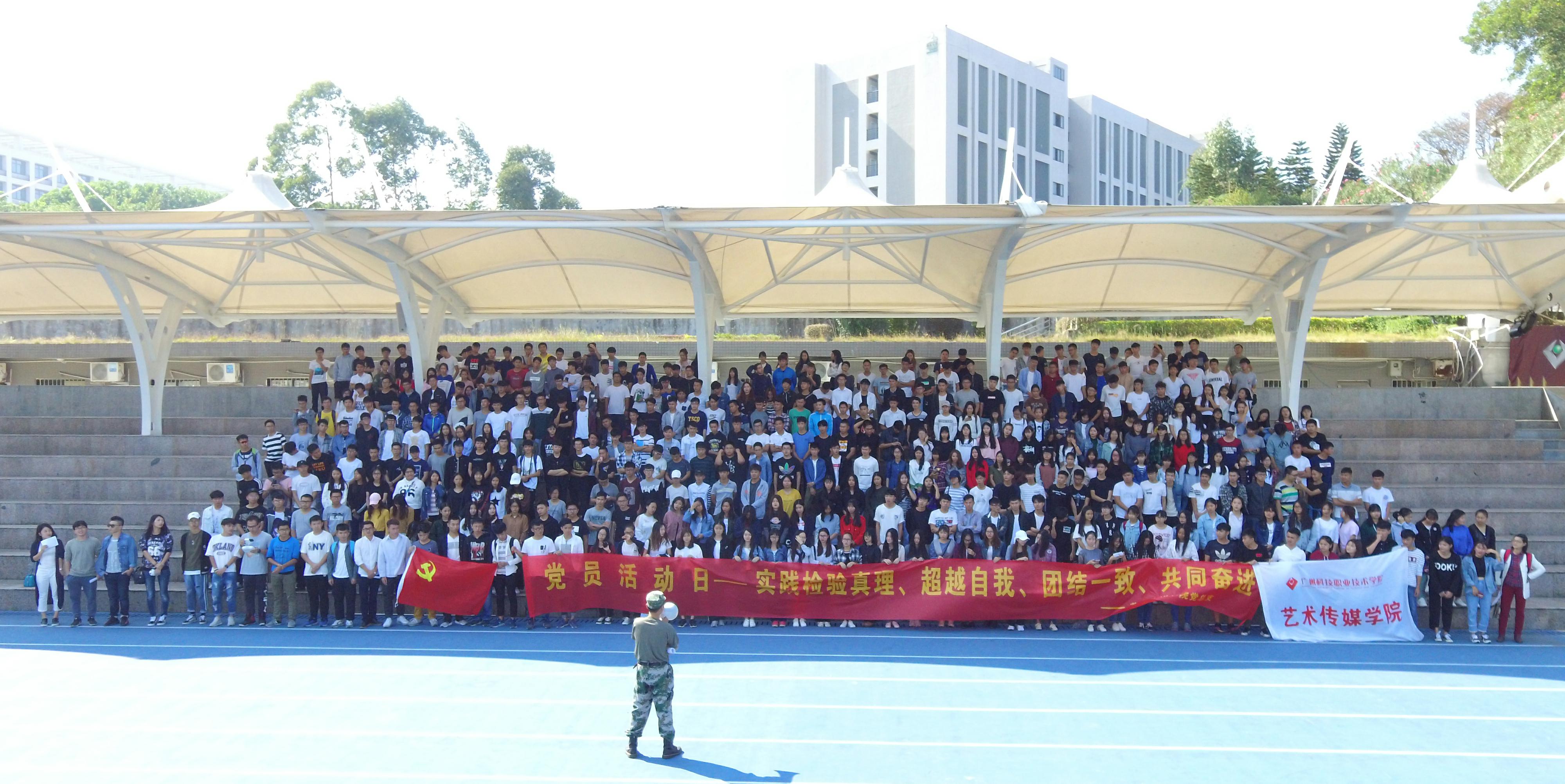 为提升党员队伍整体素质,践行社会主义核心价值观,充分发挥党员先锋模范带头作用,2017年11月1日下2点,艺术传媒学院在黄觉结书记的带领下,以“实践检验真理、超越自我、团结一致、共同奋进”为主题的素质拓展活动在田径场顺利举行,艺媒学院全体教工党员及大一、大二在校学生共计600余人参加了此次活动。