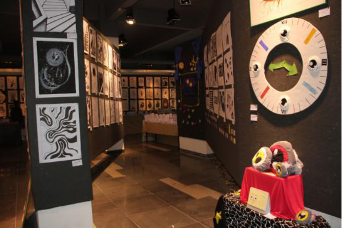 我的2012.要三思”艺术沙龙活动暨学生作品展部分展区,学生们不仅在作品构思和创作中积极发挥了三思中的“思前”、“思后”、“思侧”,同时也在布展中做到了“三思”。