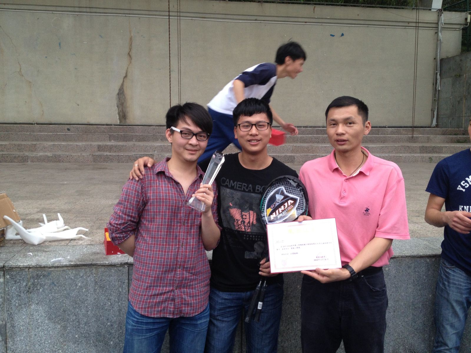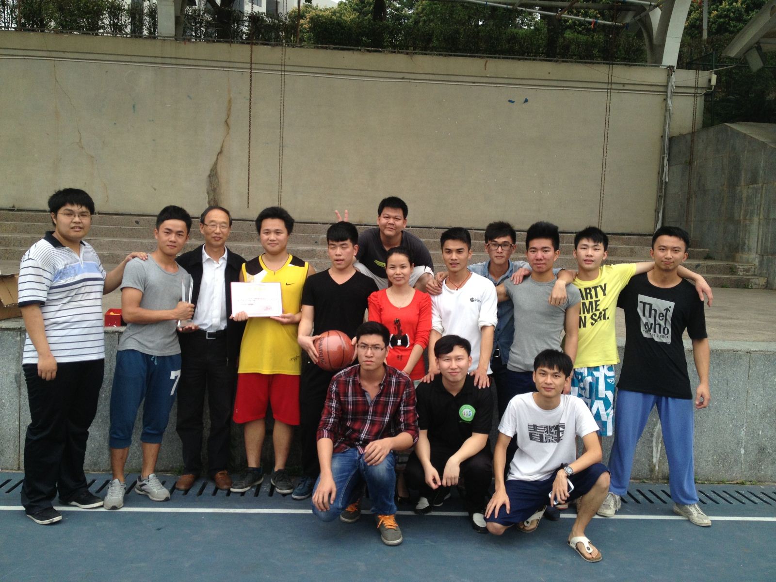 比赛结束,进行了简短的颁奖仪式,我系高主任及其各位老师为获奖的班级办法了奖杯奖品及其荣誉证书。